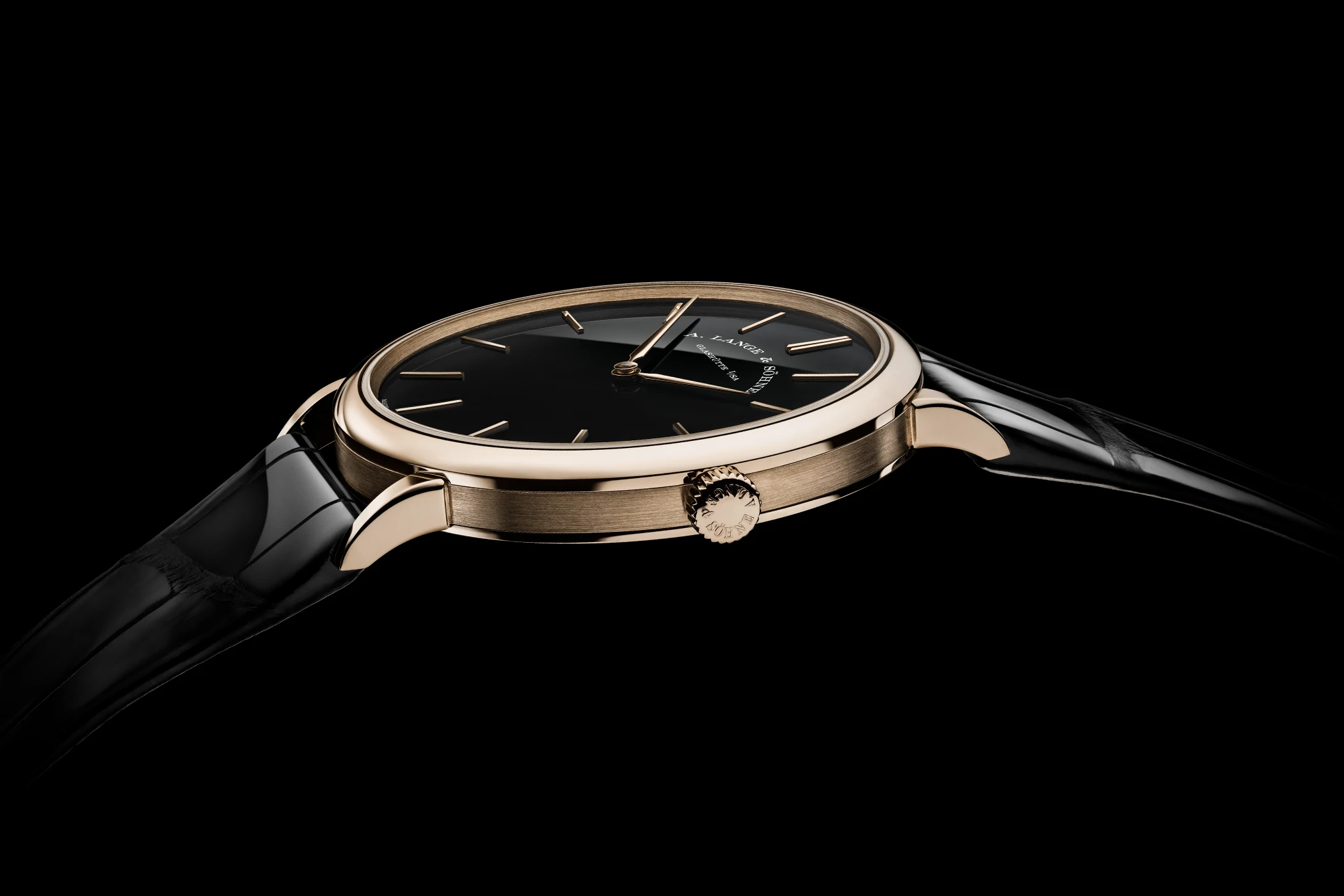 靜默奢華 朗格Saxonia Thin蜂蜜金與鉑金黑色縞瑪瑙限量版